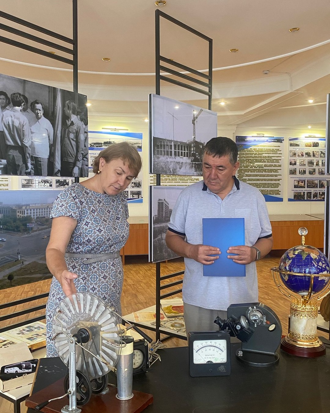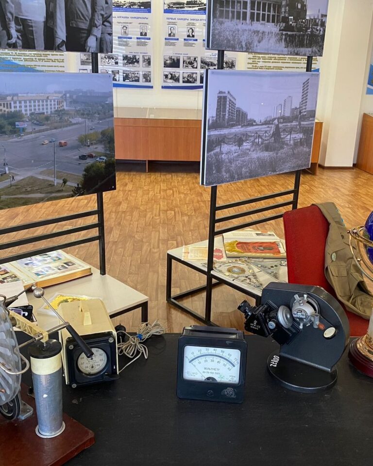 В связи с этим 17 июля в целях актуализации и пополнения информации на территории КарИУ - Завода - ВТУЗ,а также для работы в тесном сотрудничестве с музеем университета научные сотрудники нашего Центра посетили музей Карагандинского индустриального университета, где встретились с сотрудниками, организовавшими работу музея, получили много исторических фотографий, архивных документов и сведений, обменялись опытом.